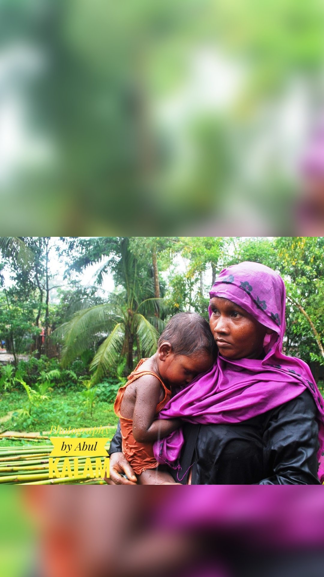 Looking at her downcast eyes and the eyes of her child cradled in her arms that is clearly afraid yet putting on a brave front to look straight at the camera, I can not help but see through her pains and sorrowful eyes that she is one protective mother. Had she given up hopes and dreams for her self ? maybe yes and maybe no but all I know is that no mother would ever give up hope for their children. Take time to look at her and you will see that beyond her weary body and sad face is the presence of lingering hopes, and longings to be free. They may have escaped death at the hands of Myanmar’s military back then but they are still trapped inside the world’s largest open air prison/ camps in Bangladesh. Though they are alive yet not truly for their spirits were mercilessly crushed in their homeland still they find ways to live for their next generation of Rohingya.